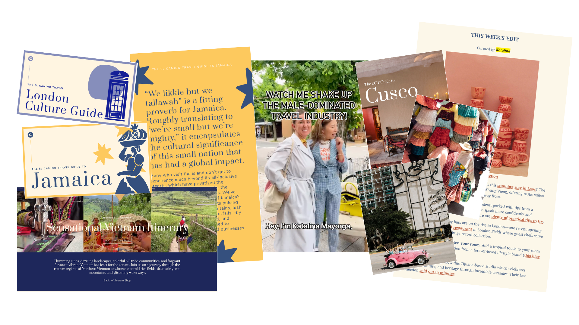 Conceived and led El Camino's Deep Dive series, which featured on the blog and Clubhouse. El Camino's audience is women who want to travel boldly and live curiously. The Deep Dive interview series platformed female creatives living around the world to show what bold living looks like globally. Each interviewee shared their personal recommendations for the places they called home, feeding authentic, insider knowledge directly into El Camino's content. The result was a content stream that simultaneously reinforced who El Camino was for, deepened community identity, and generated the kind of on-the-ground local intelligence that no travel brand can fake.