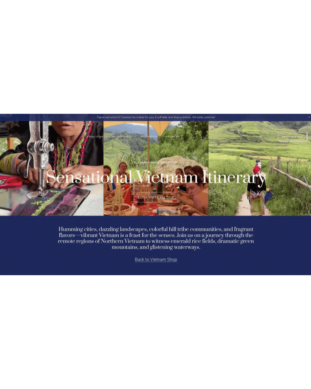Wrote the web copy for El Camino's tour itinerary pages, crafting descriptions that conveyed the immersive, culturally rich nature of each trip, and curating the visual selection to ensure every image reflected the brand's values around diversity, local connection and authentic experience.